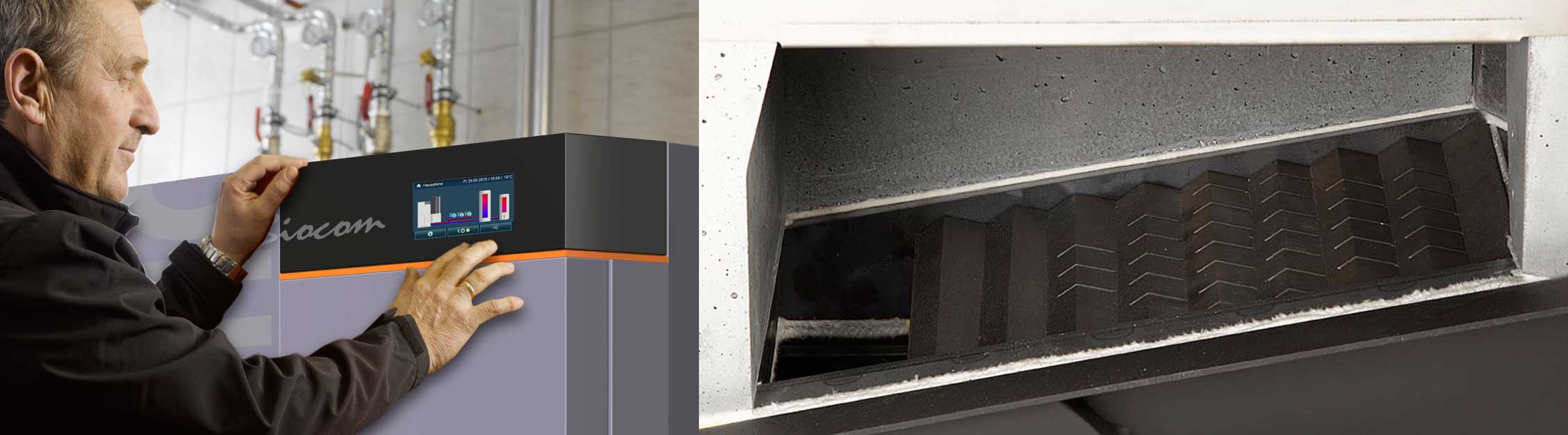 Combustion parfaite pilotée par sonde Lambda, les gaz remontent dans un généreux cylindre où les poussières et substances agressives sont neutralisées. L'échangeur de chaleur, raccordé en aval, est nettoyé en permanence et exploite le moindre degré grâce aux turbulateurs mobiles.