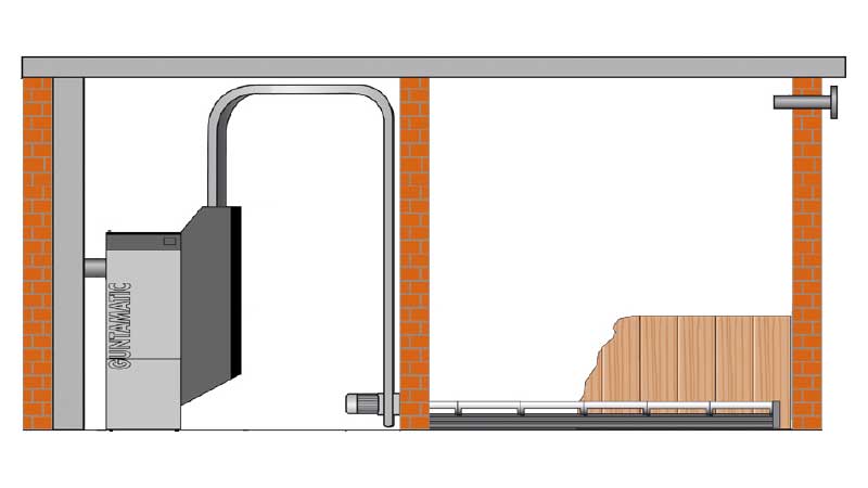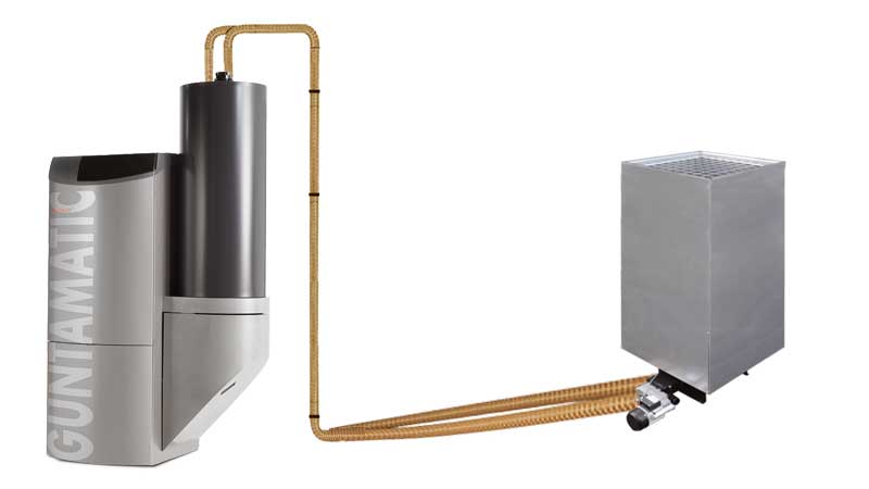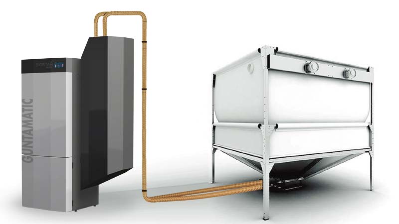 Les pellets doivent être acheminés de la réserve jusqu'au silo journalier de la chaudière. Pour atteindre la meilleure fiabilité, GUNTAMATIC a opté pour un un système pneumatique combiné à une vis. Ainsi GUNTAMATIC gère la vitesse de la vis dans la réserve et peut donc maîtriser le débit de transfert des pellets dans le système d'aspiration.
