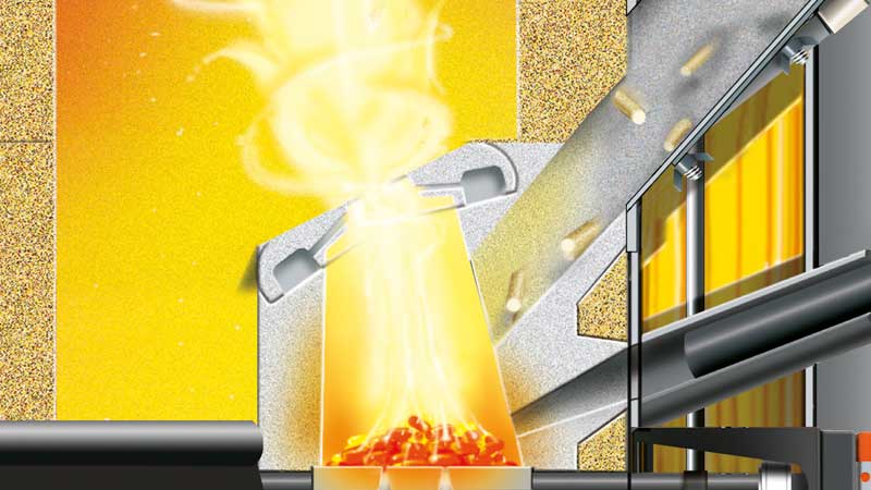 Automatique du bois jusqu'aux cendres, la chaudière nettoie l'échangeur et la base de la chambre de combustion.