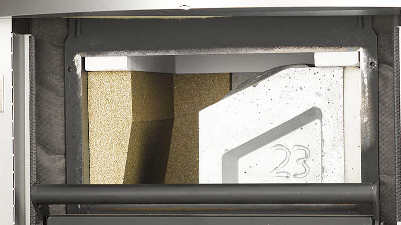 La régulation décompte et avertit quand les cendriers doivent être vidés : après +/- 1800 kg de pellets brûlés. Cendriers très accèssibles derrière la porte foyère.