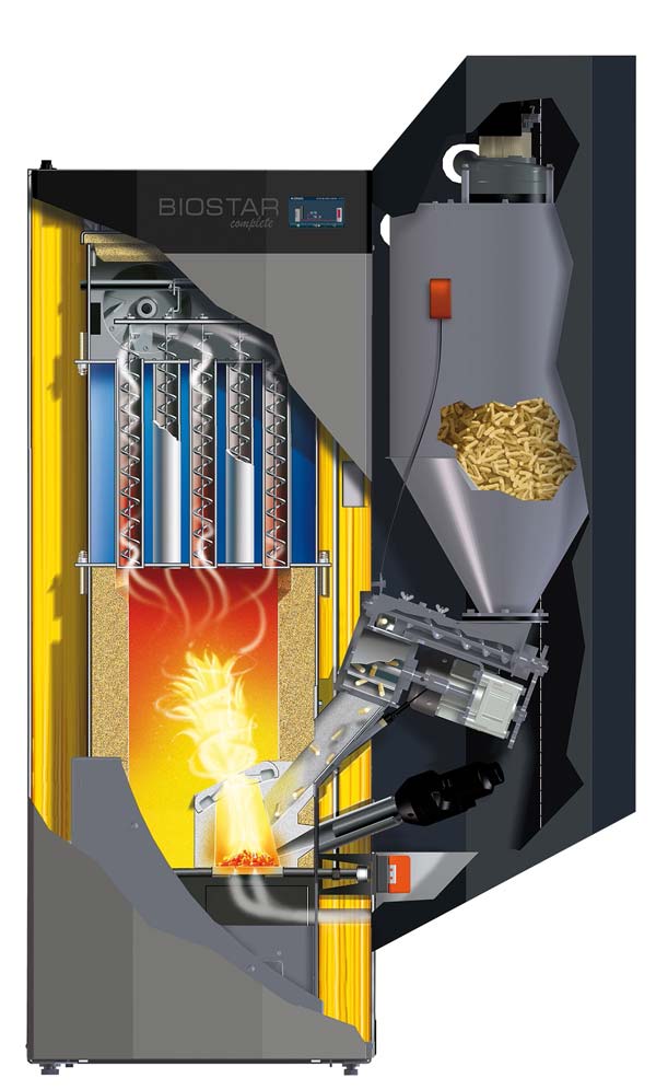 La Biostar est neutre en CO2 et préserve le climat. Elle convient aux maisons individuelles et aux bâtiments qui consomment de 3 à 13 tonnes de pellets/an.