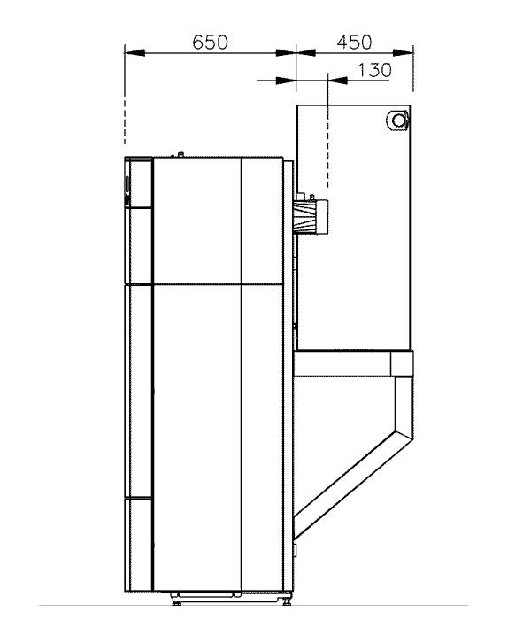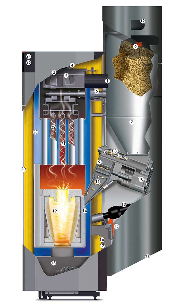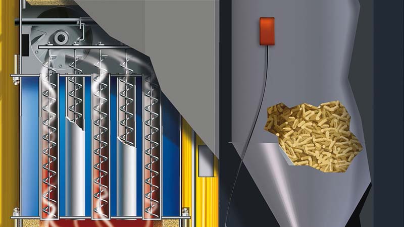 Dans une plage horaire déterminée, la chaudière aspire des pellets une fois par jour. Grâce à la gestion du débit, la distance entre la chaudière et sa réserve peut aller jusqu'à 25 mètres : sans dégât ni bourrage.