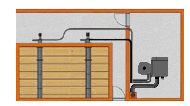 Transport pneumatique des pellets avec réglage du débit. 25m entre chaudière et réserve : sans dégât ni bourrage du combustible.