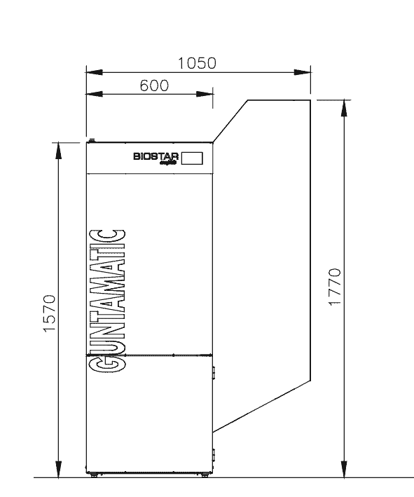 La hauteur est ajustable, avec plusieurs hauteurs entre 180 & 250 cm de haut. La quantité de pellets stockée dépend du modèle de box, de la hauteur réglée et du type des pellets.