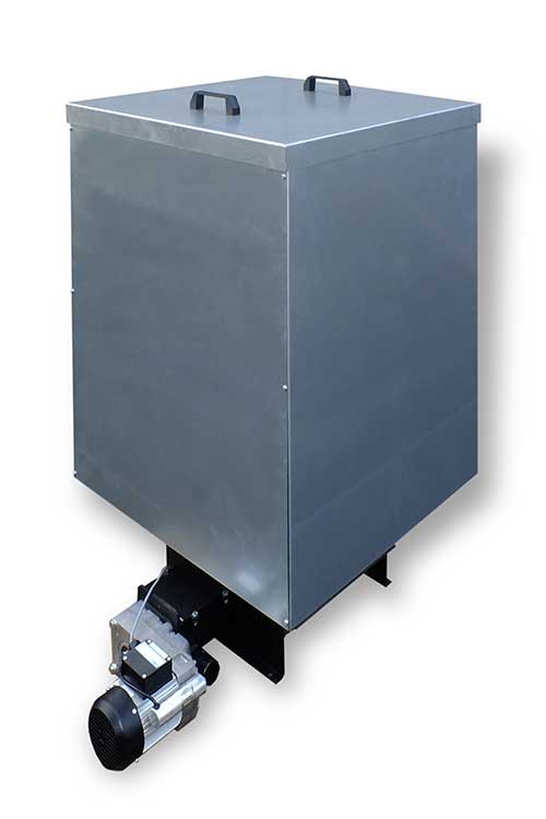 Avec des dimensions compactes : 70*70 H120 pour une contenace de 250 kg, ce minibox est fixé sur le même dessileur noir que le "grand" box. Ceci permet les mêmes possibilités avec l'aspiration chaudière. Ultérieurement, le minibox pourra être démonté du dessileur et être remplacé par un box de grande capacité.