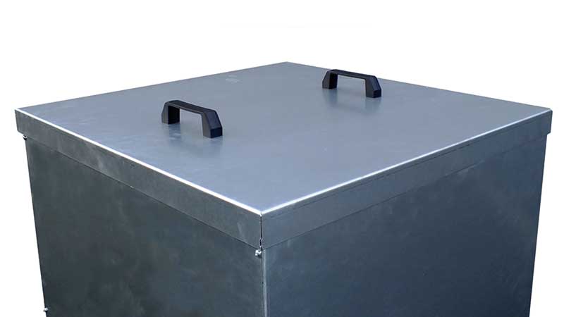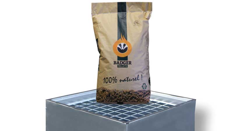 Le minibox a été conçu pour un remplissage manuel au sac. Une grille permet d'y déposer le sac fermé : sans renverser... Ensuite le sac peut être ouvert et les pellets se déversent. Un couvercle de finition protège l'entrée de corps étrangers, mais empèche aussi la propogation de fines poussières de bois lors du transfert des pellets par pneumatique.