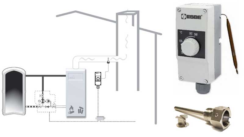 Le thermostat de gaz de fumée CTF150 est composé d'une sonde de température connectée à une unité de commutation. Ceci peut gérer le démarrage et l’arrêt d’une pompe de recyclage sur une chaudière ou un poêle hydro dépourvu de cette gestion.