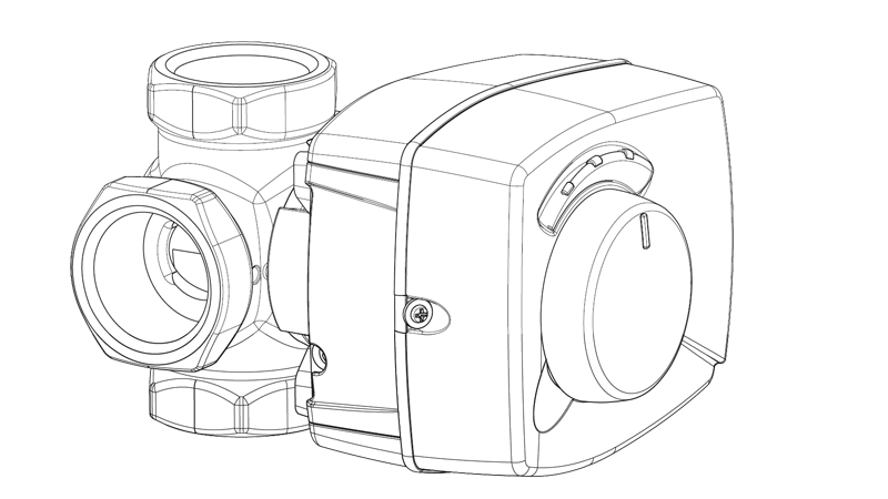 Le moteur de la vanne 3 voies intègre une régulation et une sonde de t°. La température de retour est réglable via le bouton et est affichée sur le display. L'installateur peut limiter la plage de réglage de l'utilisateur : afin d'éviter une erreur de réglage.