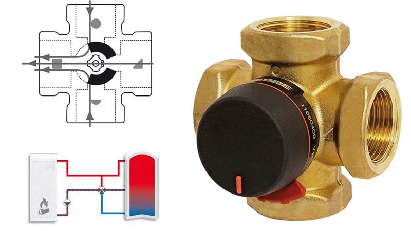 Cette vanne fonctionne dans l'esprit d'une vanne à 3 voies : des entrées froides et chaudes sont mélangées en une sortie mitigée. La VRG141 dispose d'une entrée supplémentaire et a donc 3 entrées.