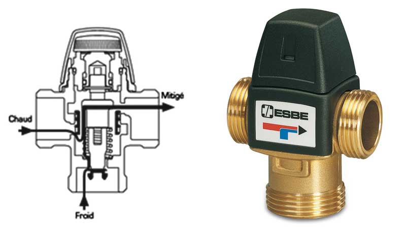 Une cartouche thermostatique mélange le départ chaudière avec le retour installation pour mitiger le retour chaudière : avec +/-5° par rapport à la t° renseignée. Cette cartouche, par exemple 60°, commence à s’ouvrir à 55°, mitige entre 55° et 65° puis est 100% ouverte au delà de 65°.