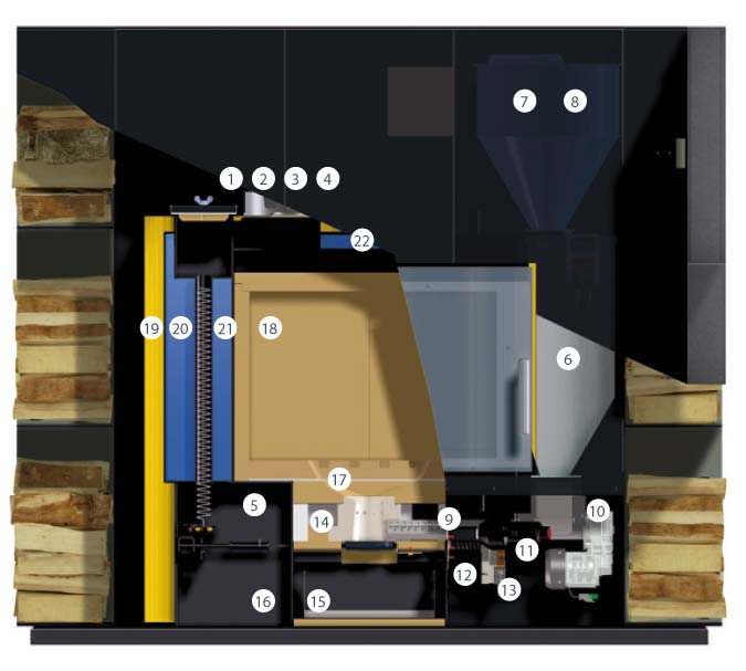 Evolution est neutre en CO2 et préserve le climat. Cette chaudière convient aux maisons basse énergie et aux bâtiments qui consomment de 1,5 à 4 tonnes de pellets/an.