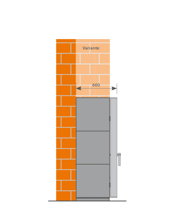 Placement contre un mur : accès à la chambre de combustion en ouvrant la porte foyère. Accès à la chaudière en ouvrant l’habillage frontal.