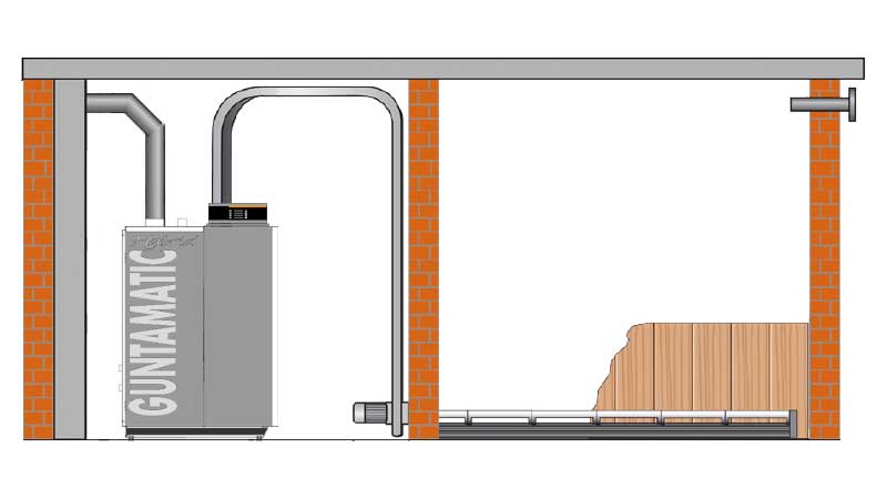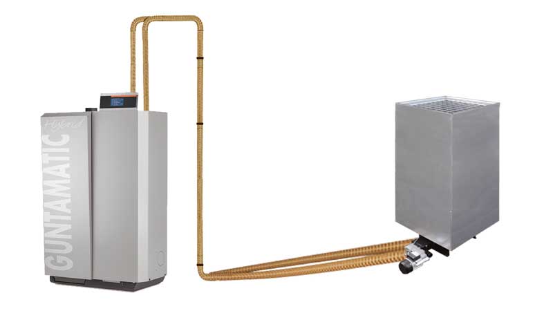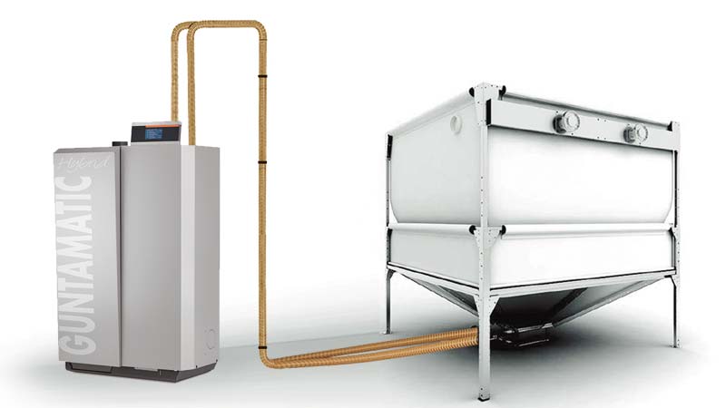 Les pellets doivent être acheminés de la réserve jusqu'au silo journalier de la chaudière. Pour atteindre la meilleure fiabilité, GUNTAMATIC a opté pour un système pneumatique combiné à une vis. Ainsi GUNTAMATIC gère la vitesse de la vis dans la réserve et peut donc maîtriser le débit de transfert des pellets dans le système d'aspiration.