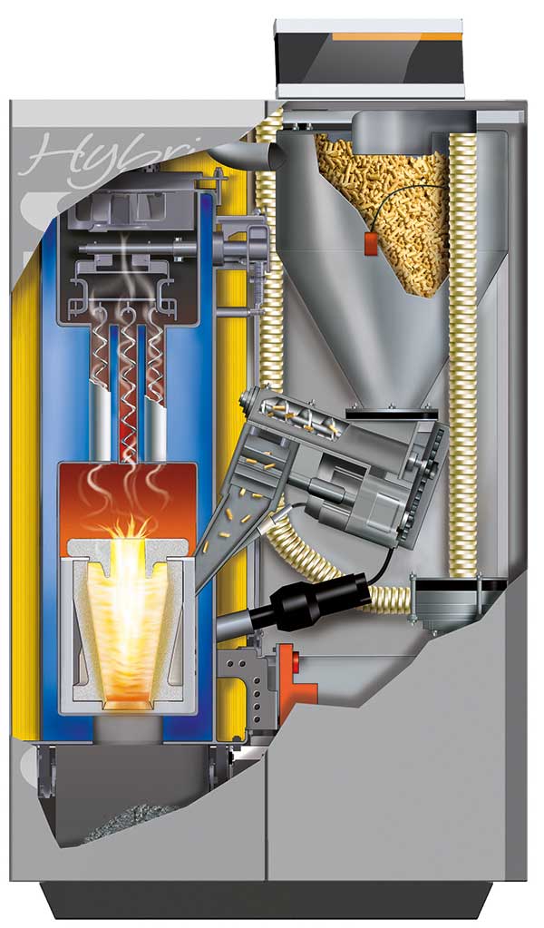 L'Hybrid 10 est neutre en CO2 et préserve le climat. Elle convient aux maisons basse énergie et aux bâtiments qui consomment de 1,5 à 4 tonnes de pellets/an.