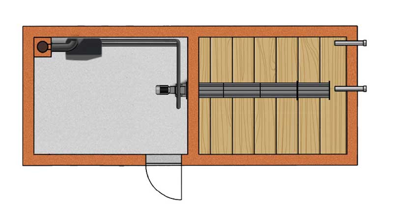 Avec une vis centrale et 2 plans inclinés, une réserve "flex" est construite au départ d'une pièce existante ou avec des cloisons. Cette solution est conseillée quand on veut adapter la réserve de pellets au volume disponible.