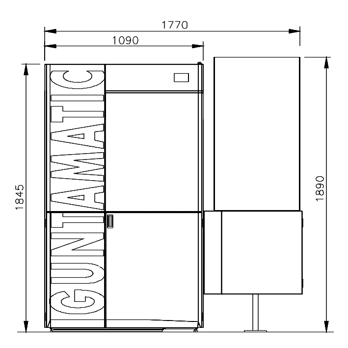 La hauteur est ajustable, avec plusieurs hauteurs entre 180 & 250 cm de haut. La quantité de pellets stockée dépend du modèle de box, de la hauteur réglée et du type des pellets.