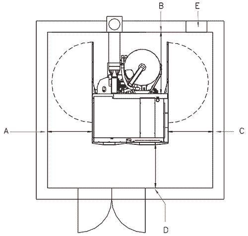 - un élément fermé pour le passage mural, avec moteur et trappe de visite